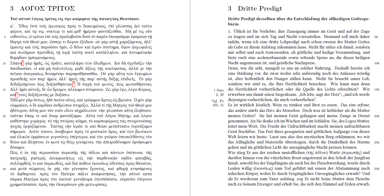 Predigt 3: Homilia III In dormitionem B. V. Mariae / Τοῦ αὐτοῦ λόγος τρίτος … (PG 96, 753–762, Kap. 1-5):