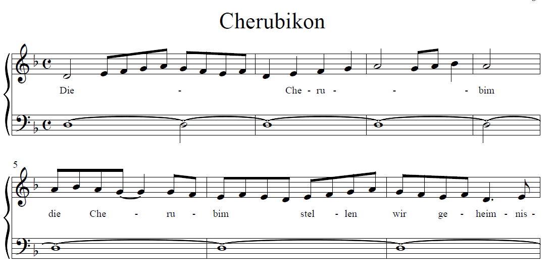 Wer jedoch die Kunst, byzantinische Neumen zu lesen, nicht beherrscht, braucht eine „Umschrift“ in westliche Klavier-Notation (s. Bspl. 2). Gute Beispiele dafür sind in Ausgaben des „Andreas-Boten“ zu finden.